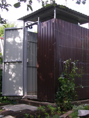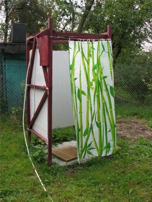 Место для летнего душа обычно выбирают на дальней стороне дачного участка, скрытой от посторонних глаз, продумывают также способ нагрева и подачи воды, расположение и конструкцию бака.
