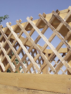 Для железного каркаса потребуются стойки из труб диаметром не менее 50 мм, а также элементы обносок и прожилин из уголка 45 мм такой же длины. В этом случае металл — самый удобный, практичный и надежный материал для строительства. Стенки обшивают любым строительным материалом, устойчивым к солнечным лучам и атмосферным явлениям: досками, рейками, железными листами, жестью, профнастилом и т. д.