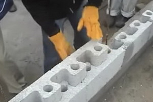 При строительстве готовые элементы ставятся на фундамент с помощью клея для укладки искусственного камня и фиксируются стержнями, которые вставляются в горизонтальные отверстия, пронизывающие тело конструкции через каждые 40-50 см. Эти отверстия образуются в результате соединения отдельных элементов системы в единую конструкцию, что действительно весьма схоже со сбором пазла.