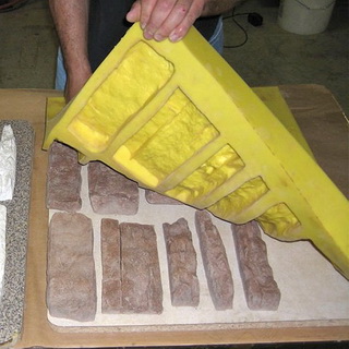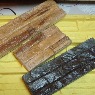 Существует несколько способов окраски декоративного камня. Первый: пигменты добавляют в массу раствора и/или наносятся перед его заливкой в форму на ее поверхность. В этом случае материал получается прокрашенным на всю толщину, а цвета и оттенки его лицевой и торцевых поверхностностей на 1,5-2 мм проникают вглубь. Это надежная и правильная методика. Она исключает быстрое выцветание и/или смывание окраски камней.