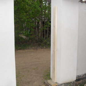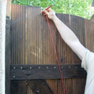 Сначала выбирают место для ворот и калитки и устанавливают деревянные или металлические стойки. Затем, согласно размерам, готовят прожилины из реек толщиной не менее 25 мм и шириной 40 мм: две по 1 м для калитки и четыре по 1,85 м для ворот. Из них временно, но жестко сбивают прямоугольники так, чтобы расстояние между прожилинами было на 30-50 см меньше высоты столбика. Сюда входит зазор между землей и нижней стороной створок ворот и калитки (10-15 см), а также выпуск краев элементов заполнения относительно самих прожилин (10-20 см).