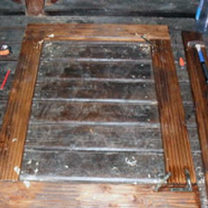 В качестве пиломатериала для рам обычно используют доски сечением не менее 40×120 мм, а в качестве элементов заполнения для внутреннего пространства створок — доски той же толщины, что и рама, филенку, МДФ-панели или профилированные рейки.