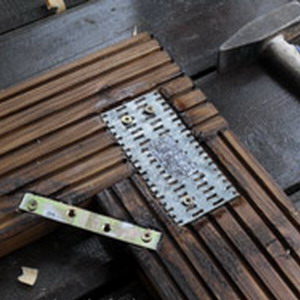 Деревянные калитки для дачи начинают изготавливать и устанавливать, когда весь необходимый материал приобретен.. Сначала выпиливают вертикальные детали створок (36 штук). Затем с тыльной стороны поперек досок прорезают канавки глубиной 1-1,5 см по ширине прожилин на расстоянии 20-30 см от обоих торцов. Для этого можно воспользоваться ножовкой, электропилой, ручным фрезерным инструментом или распилочным станком.
