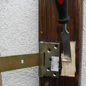 Далее приступают к сборке щитов для ворот и калитки. При этом прорезанные на досках канавки должны совпасть и сформировать продольный паз, куда затем вставляют бруски-прожилины, прикрепляя их с помощью гвоздей или шурупов. Готовые створки оснащают петлями, монтируют на стойки и устанавливают, как описано в разделе «Установка ворот» этой главы.