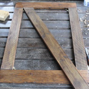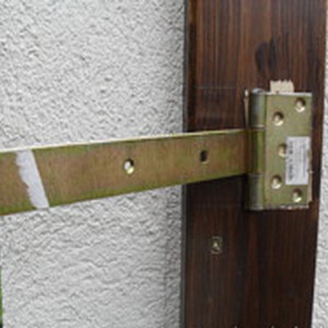 Перед тем как сделать деревянную калитку, полученную конструкцию переворачивают и оснащают укосиной (диагональной рейкой), которую крепят к прожилинам шурупами. Затем начинают заполнять лицевую часть створок, формируя штакетник или иной вид обрешетки. Когда створки готовы, временные фиксаторы убирают и приступают к монтажу ворот и калитки.