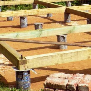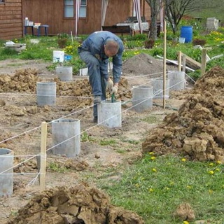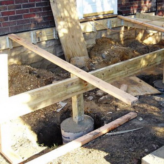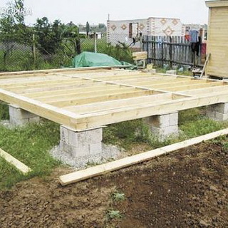 Под них вдоль длинной стороны террасы ставят фундамент — несколько бетонных столбов-опор. Их количество зависит от размеров сооружения и типа грунта на месте постройки.