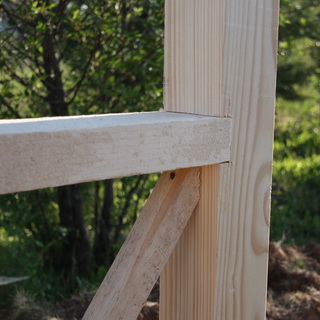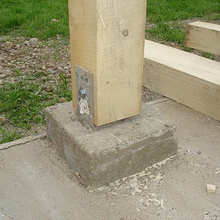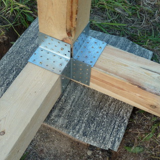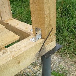 Как правило, каркас собирается из брусьев сечением 50 х 150 мм с помощью металлических крепежных уголков с перфорацией. Балки наружной обвязки опираются на стойки, прикрепленные к фундаментным опорам с помощью анкерных подпятников. Такое крепление стоек предотвратит их загнивание и избавит от атак древоточцев.