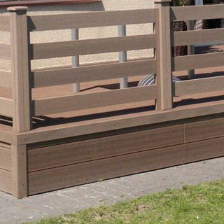Обратите внимание на фото – при строительстве высокой террасы своими руками полотнища снизу и сверху закрепляют между профилированными рейками: