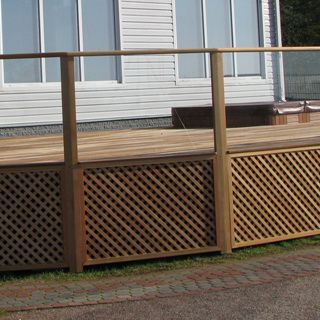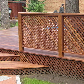Обшивку террасы можно делать не только сплошной, но и ажурной, то есть с просветами между планками.