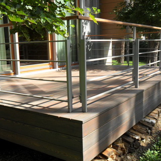 Доски террасного настила можно прибивать к балкам и лагам оцинкованными гвоздями или шурупами.