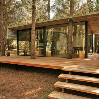 Если дом расположен на склоне и даже первый этаж, словно парит над садом, то, казалось бы, террасе здесь нет места. Однако ее можно поставить на высокие стойки и поднять настил до уровня нулевой отметки дома. Такая терраса на столбах, возвышающаяся над морем зелени, словно капитанский мостик, гармонично впишется в конструкцию дома, а легко опускающиеся тканевые экраны защитят террасу от ветра, прямых солнечных лучей и создадут уютную атмосферу.