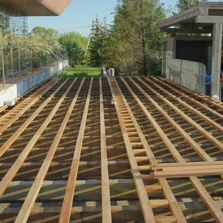 Перед тем как сделать террасу на склоне, нужно возвести каркас. Для постройки такого сооружения потребуется много пиломатериалов, но работа, по сути, не так уж сложна, поэтому здесь описаны только основные конструктивные элементы. Размеры постройки должны соответствовать геометрии своего участка и размерам дома. Балки для террасы на склоне участка можно приобрести любого сечения с учетом возможности использования имеющегося в наличии крепежа.