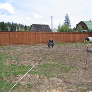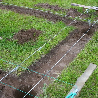 Обозначьте колышками контур террасы, разметьте места, где будут лежать балки и стоять опорные стойки. Протяните шнур между колышками и убедитесь, что все столбики фундамента расположены на одной линии, — и только после этого можете приступать к выкапыванию ям.