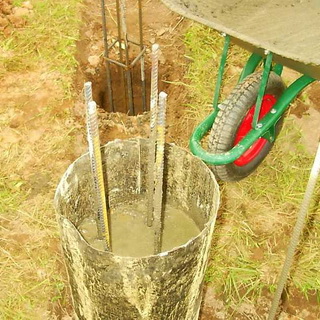 Бетонные столбы изготавливают путем заливки раствора в пластиковые трубы (которые применяют, например, для канализации), установленные в пробуренные ямы. Заглубление опорной пяты фундаментного столба определяется глубиной промерзания и характеристиками грунта. Однако, прежде чем бурить яму, убедитесь, что вы точно разметили периметр террасы. Большое внимание уделите фундаменту, так как очень важно сделать его правильно.