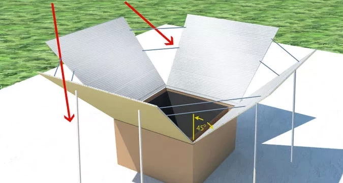Основным элементом создаваемой своими руками солнечной печи является солнечный коллектор. Он предназначен для концентрирования тепловой энергии. Благодаря этому тепловую мощность удается сфокусировать на небольшой поверхности, где температура поднимается примерно до 200 °С. Этого вполне достаточно для тепловой обработки пищевых продуктов.