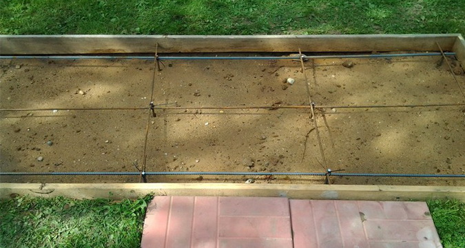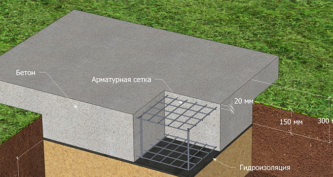 Для создания фундамента необходимо снять растительный слой на глубину около 150 мм (до коренного грунта), насыпать на дно слой песка толщиной 70-80 мм и залить бетоном чуть выше поверхности земли. В качестве наполнителя можно использовать гравий, щебень, расколотый кирпич.