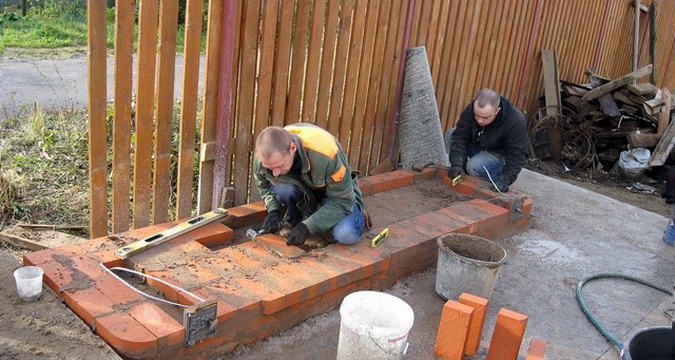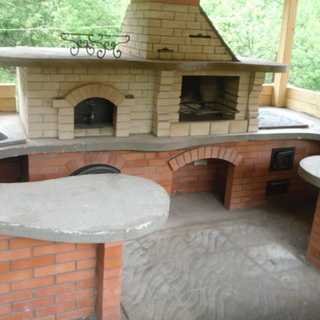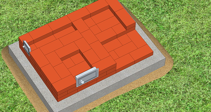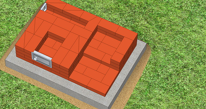 Для возведения горнила используют кирпич или бетонные плиты. Кроме того, можно приобрести готовый строительный набор для уличных печей, детали которого изготавливаются из специального жаропрочного бетона. Такую кирпичную летнюю печь легко собрать как конструктор.