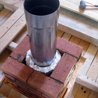 Трубу следует вставить в манжету со свинцовым напуском, наполненную минеральной ватой. Для защиты трубы от проникновения влаги необходимо зазор между манжетой и трубой заполнить высокотемпературным силиконом. Между трубой и крышей следует уложить слой минеральной ваты. В уличных печах теплоизоляция очень важна. Между печью и скатом крыши нужно насыпать слой негорючего керамзита толщиной 10 см и уложить минеральную вату. Такая прослойка защитит крышу от перегрева и создаст оптимальную температуру для выпекания. Кроме того, качественная теплоизоляция позволит готовить пищу даже в холодное время года — до -10 С. При более низких температурах использовать уличную печь нецелесообразно: будет расходоваться большое количество дров.