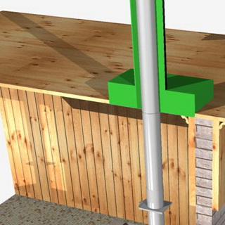 Свес крыши перед устьем печи является пожароопасным местом, поэтому он должен быть облицован огнеупорными плитами толщиной 30 мм. Из-за сильного жара от печи фронтон рекомендуется построить не из дерева, а из ячеистого бетона толщиной 50 мм и облицевать плиткой. Для большей надежности все деревянные детали следует покрыть специальным защитным составом — антипиреном. Кроме того, любую деревянную конструкцию под открытым небом необходимо защищать от грибка, насекомых и гнили. Для этого можно использовать специальные химикаты. Проще всего для защиты древесины нанести на деревянные части конструкции влагостойкую краску.
