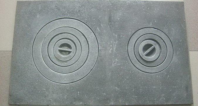 Единственный готовый элемент русской печи — чугунная варочная плита с конфорками. Но и ее можно сделать самостоятельно, если найдется подходящая стальная плита толщиной 4-6 мм. В ней следует вырезать два круглых отверстия для конфорок. Вырезанные круги потом можно будет использовать для изготовления крышек конфорок.