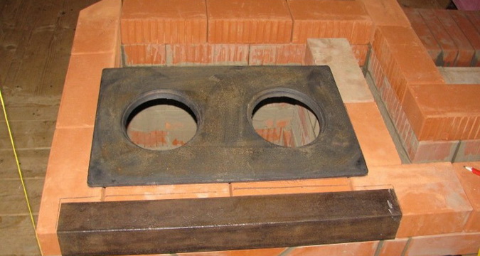 Варочную плиту необходимо разместить на ложемент и кирпичные боковые стенки, а внутри топки установить колосниковую решетку. После этого следует осторожно протопить и тщательно просушить кладку, а затем использовать летнюю варочную печь по назначению.
