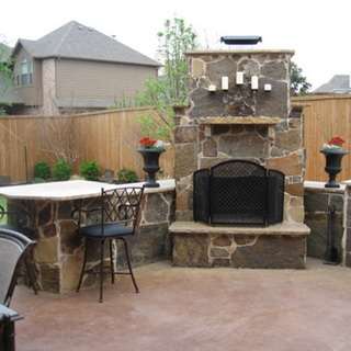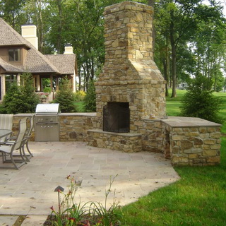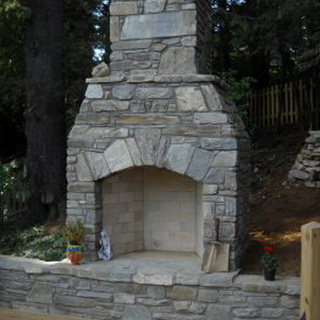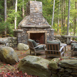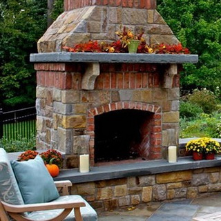 Уличный камин из камня очень удобен в использовании и довольно практичен. Чтобы топка в такой конструкции могла выдерживать любые термические нагрузки, в нее вмонтирована шамотная каминная вставка. Карниз (выступающая часть перекрытия) вокруг каминной вставки облицовывают влагостойкими клинкерными плитами, которые отлично поддаются чистке.