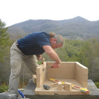 Элементы шамотной каминной вставки нужно разместить поверх теплоизоляции и временно соединить между собой вязальной проволокой. Вместо шамотной вставки можно использовать огнеупорный кирпич.