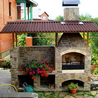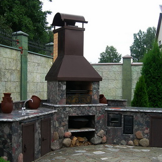 Садовые камины с барбекю созданы для установки не под открытым небом, а под легкой крышей, они могут быть также с мангалом. Она позволит превратить обычную беседку в уютное место для пикника. Садовый мангал-камин не предусмотрен для получения тепла, поэтому продумывать дымообороты здесь нет необходимости. Главное, чтобы правильно отводился дым при жарке продуктов. Этого легко добиться путем соблюдения размеров: площадь сечения трубы должна составлять не менее 12% от площади входного отверстия топки.