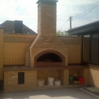 Облицовка уличной печи кирпичом и изготовление дымоуловителя (с фото)