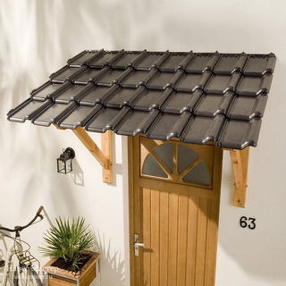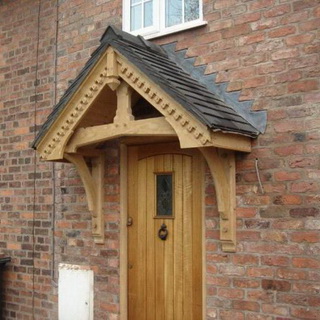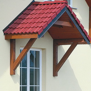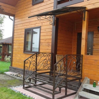 Весьма популярным материалом для навесов и козырьки к частному дому является и дерево, но за ним требуется регулярный уход, к тому же при выборе материала для козырька необходимо учитывать не только его конструктивные свойства, но и стилистическое решение, то есть соответствие стиля разрабатываемого навеса общему стилю фасада здания. Деревянное изделие подойдет не ко всем фасадам. Впрочем, то же относится и к металлу.