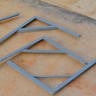 Для изготовления своими руками кронштейнов к входному козырьку используют стальные уголки подходящего размера (например, 50 х 50 мм). Определившись с габаритами будущего навеса, отрезают по 2 уголка требуемых размеров (длинные — для кронштейнов и короткие — для перемычек). Длинные уголки в месте изгиба надрезают до ребра, сгибают по вырезам и соединяют полученные кронштейны с перемычками сваркой или с помощью заклепок. Аналогичным образом следует усилить и место сгиба.