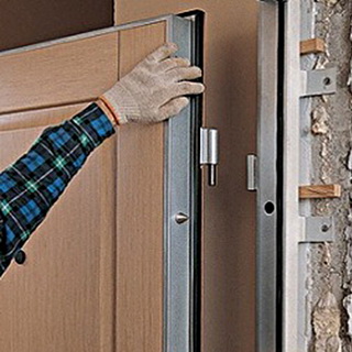 В узкой конструкции поместится только дверь обычного размера, ее крепят между стеновой и угловой стойками. Если каркас более глубокий, понадобится промежуточная стойка, к которой будет крепиться одна из сторон дверной коробки.