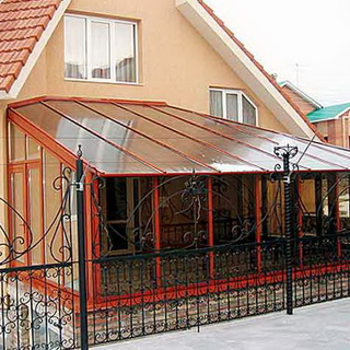К ним относятся установка водоотливного фартука и водосточного желоба. Первый из них крепят у стены поверх прозрачной кровли, стык со стеной герметизируют.