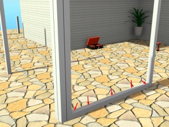 Крепить угловые стойки можно разными методами. Если под зимний сад вы закладывали фундамент, как говорилось выше, то в его углах во время заливки нужно сразу забетонировать анкерные кронштейны. В случае если при пристройке зимнего сада можно обойтись без фундамента (например, климатические условия позволяют обойтись внутри помещения деревянным настилом), под опоры нужно сделать столбчатый фундамент. При наличии патио или террасы, замощенной плиткой, в нужных местах просверливают отверстия в основании и на анкерах устанавливают металлические подпятники.