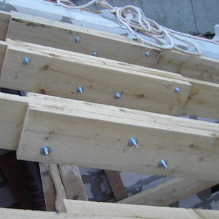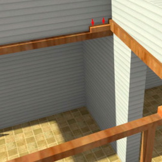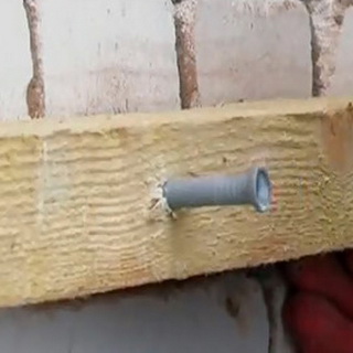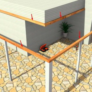 Для этого используют подходящие для кирпичной стены шурупы и дюбели. Аналогичным методом крепят настенный опорный брус, формируя тыльную раму сооружения.