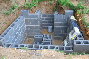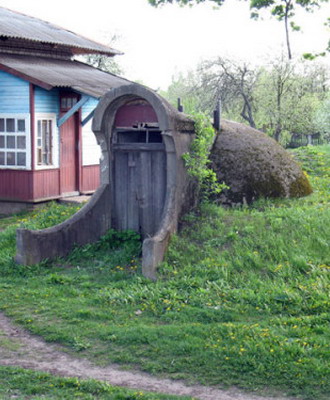 Водоотводную систему сооружают как в предыдущем варианте. Для улучшения теплоизоляционных свойств погреба перед входом можно сделать небольшой предбанник либо возвести еще одну утепленную стену внутри погреба на расстоянии 50 см от входа. Если поверх полученной конструкции организовать хорошую гидроизоляцию и присыпать ее плодородным грунтом толщиной 10-15 см, то погреб можно замаскировать под альпийскую горку.