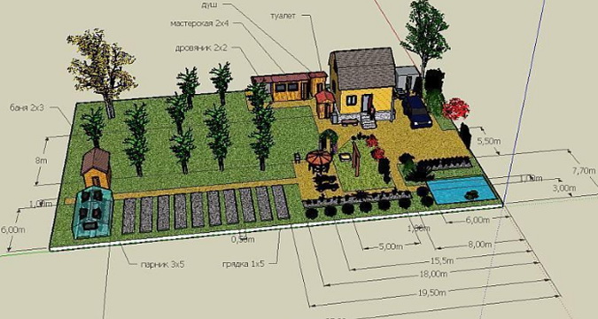 Для того, чтобы понять, где расположить дом на участке так, чтобы окружающая вас среда была комфортной, рекомендуется провести функциональное зонирование участка с выделением жилой и хозяйственной зоны.