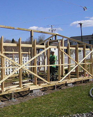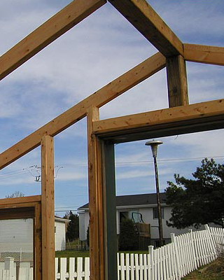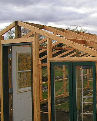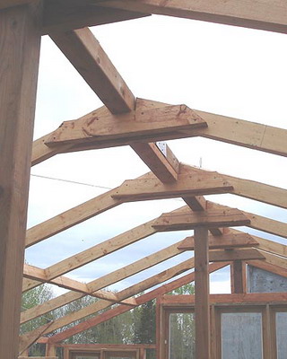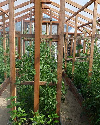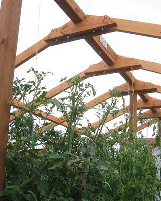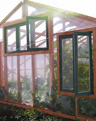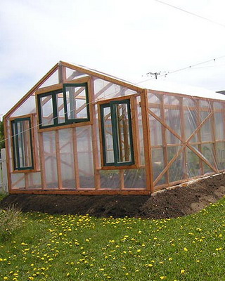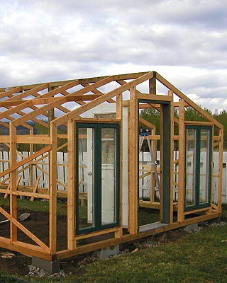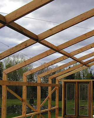 Каркасную теплицу из дерева под остекление сооружают из хвойных пород древесины высокого качества, иначе деформация несущих конструкций (после естественной усушки) вызовет растрескивание стекол.