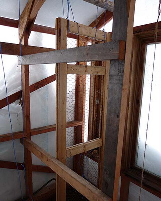 В завершение работ рамы остекляют, вставляют в металлические подрамники и заделывают щели между ними, жестко укрепив стяжными болтами соответствующего диаметра. Остекление и установку рам желательно выполнять с использованием резинового уплотнителя. Щели между рамами заделывают любым подручным теплоизоляционным материалом: паклей, мхом, стекловатой и т. д. Его плотно утрамбовывают и закрывают сверху деревянной планкой.