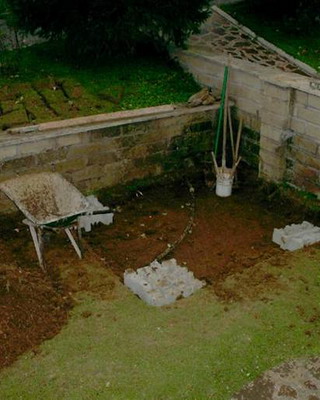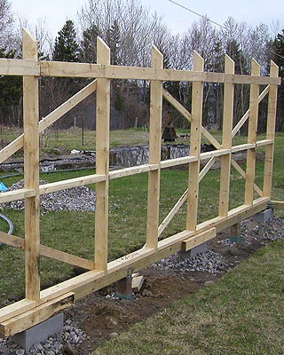 Нижнюю часть теплицы между столбиками можно заполнить кирпичом, бетонным раствором, глиной вперемешку с камнями либо грунтовой засыпкой.