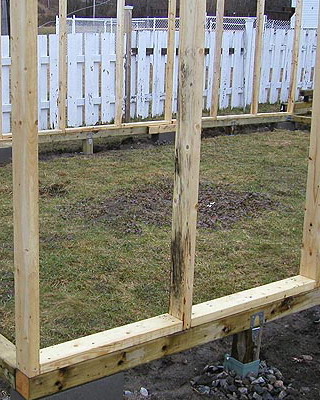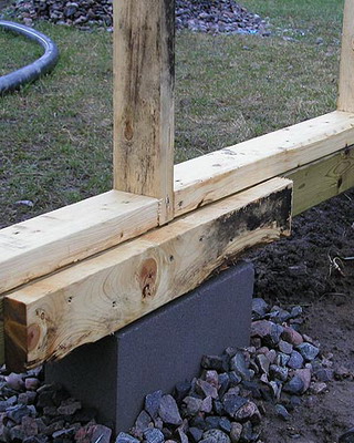 Перед тем, как сделать деревянную теплицу, каркас монтируют на нижнюю балку обвязку, которую, в свою очередь, устанавливают и укрепляют на ленточный или столбчатый фундамент.