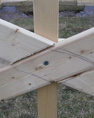 Для крепления элементов конструкции между собой применяют все виды соединений, включая металлические скобы, крепежные уголки и накладные пластины сопряжения. Укосины (косые опоры) и перевязки в теплицах используют только для временного укрепления стоек и обвязок.