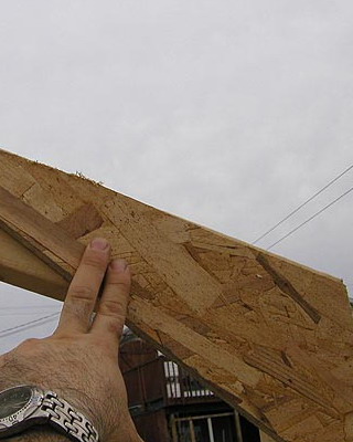 Далее переходят к сборке элементов крыши. Сначала по бокам стеновых панелей устанавливают фермы, закрепив их в местах сопряжений на уголки. Поверх ферм укладывают скаты, параллельно устанавливая элементы крепежа и скрепляя их болтами по ранее просверленным отверстиям. Затем в стыках по фронтальной, тыльной и боковым сторонам, а также в углах между скатами прокладывают мягкую теплоизоляцию типа пакли, стекловаты и др. Сверху монтируют конек и козырек, закрепляя их на гвозди или саморезы длиной 3-4 см, и стягивают все болты на элементах крыши.