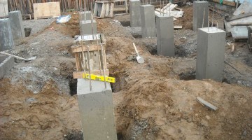 Если участок имеет уклон до 20°, то рационально отливать фундамент для строительства каркасного дома в более высокой опалубке, делая скважину менее глубокой, но с последующей засыпкой столбика грунтом для защиты от промерзания. Посмотрите фундамент для каркасного дома на фото, где показаны этапы его закладки: