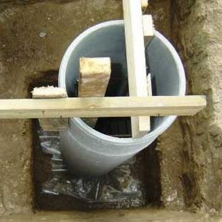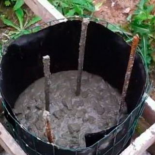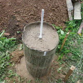 Затем в опалубку заливают жидкий бетон до верхнего среза. После схватывания бетона проволоку разматывают, опалубку снимают и яму засыпают.