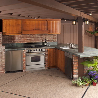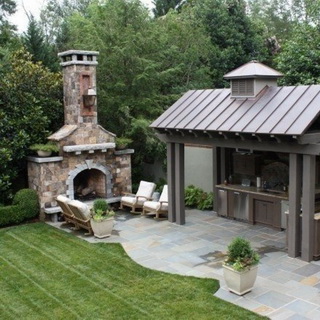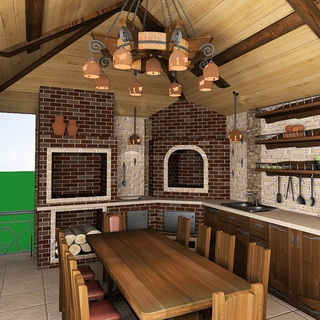 Летняя кухня на приусадебном участке облегчает многие хозяйственные работы, в особенности приготовление пищи, стирку и т. д. Используют ее и в качестве столовой на открытом воздухе, террасы, если она примыкает к дому, или навеса-беседки, если она находится в зоне отдыха. Ее площадь составляет обычно 6—8 м2, реже — до 12 м2.