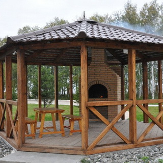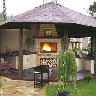 Площадку перед жаровней в целях пожарной безопасности выстилают тротуарной плиткой. Сама жаровня должна быть достаточно удалена от деревянных конструкций, а последние — обработаны составом для повышения огнестойкости.