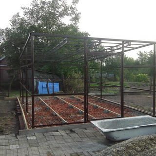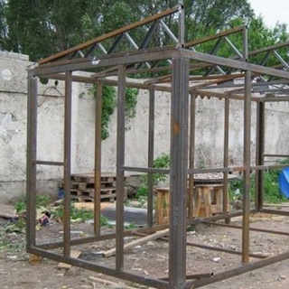 Особенностью данной постройки хозяйственного назначения является то, что она изготовлена в виде сборной конструкции. Как известно, наиболее простыми для сварки пространственными положениями являются нижнее положение и «в лодочку». Всех остальных положений для сварки можно избежать, если сооружаемый объект будет разбит на отдельные секции, которые в процессе изготовления могут занимать любое пространственное положение. Затем отдельные секции можно собрать в единую конструкцию на болтах или заклепках и, разумеется, с помощью сварки, если ее можно применить в удобном положении. Такие работы не являются сложными, к тому же изготовить секции можно в домашней мастерской или на заказ, а затем привезти на дачный участок и довольно быстро собрать всю конструкцию.