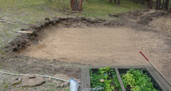 Для установки хозблока на участке выбирают ровную площадку размером 2 х 2,5 м. По периметру основания выкапывают канаву глубиной 15 см и заполняют ее щебнем или гравием. Кроме создания дренажа, уменьшающего вредное воздействие влаги на основание каркаса, это позволит обеспечить горизонтальное положение основания за счет подсыпания или удаления щебня.