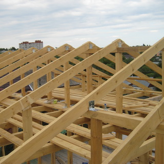 Установка в такой хозяйственной постройке на дачном участке любого грузоподъемника требует прочности конструкции. Это достигается использованием в каркасе основных узлов в форме арок. Каждая арочная ферма изготовлена из двух полуарок, которые собирают на строительной площадке из досок сечением 50 х 150, 50 х 200 и 50 х 250 мм. В углах устанавливают бруски сечением 150х 150 мм, выполняющие роль стоек. Узлы фермы закрепляют гвоздями 5,5 х 175 мм и 4 х 100 мм.